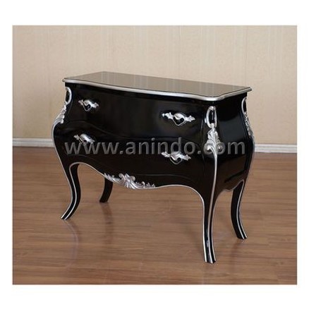 Bombe Commode in mahogany timber – black painted with silver leaf finish gilding W115/H87/D48
