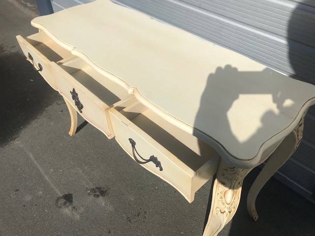 Hand-painted Commode chiffonier in Mahogany timber in Harlequin antique cream / black antique– distressed finish W1000mm / H900mm / D500mm