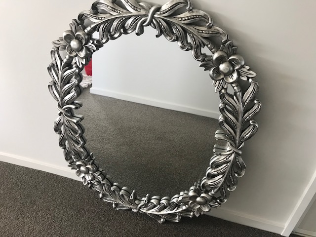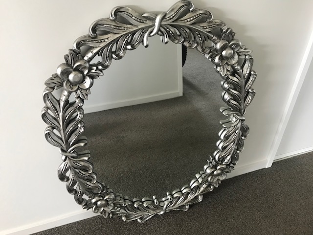 Louis XV Silver leaf gilded finish mirror with beveled glass