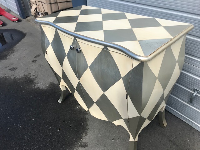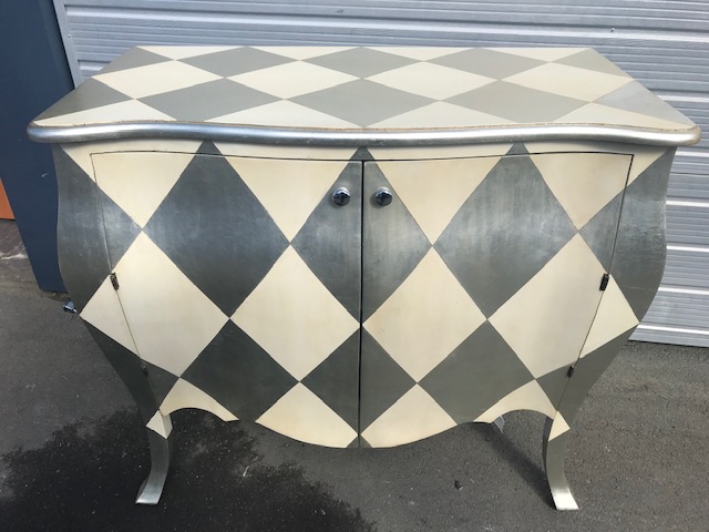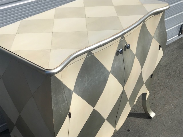 Vania commode in mahogany hand-painted antique silver with antique cream diamond Width 1000mm / Height 500mm / Depth 900mm
