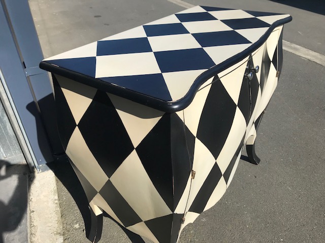 French Commode chest made of mahogany in an antique cream / black diamond finish hand-painted W1090 / H540 / D860 $ 2250.00 plus